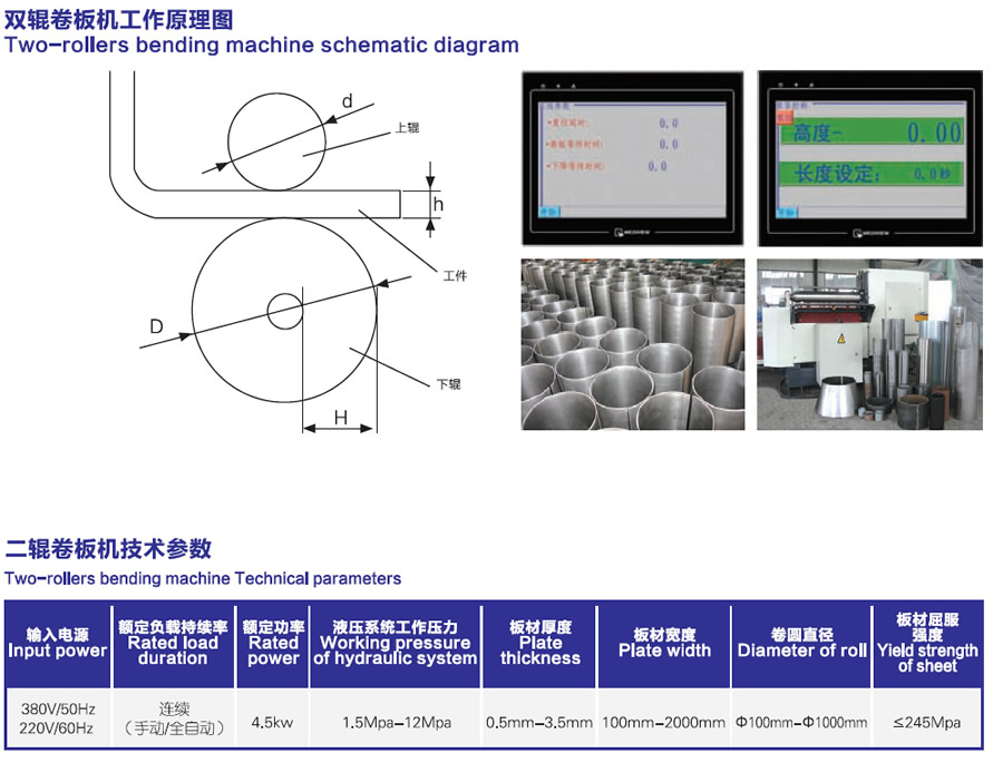 該設(shè)備自動(dòng)化程度高,一次卷制成型,無(wú)明顯直邊,卷圓進(jìn)度高,產(chǎn)品一致性好。提高了生產(chǎn)效率,降低了生產(chǎn)成本。是高效率、高精度、高自動(dòng)化的卷板設(shè)備。廣泛應(yīng)用于大批量制造薄壁管,汽車油桶、通風(fēng)管道、煙囪、過(guò)濾器,太陽(yáng)能熱水器,汽車排水管,儲(chǔ)液(氣)罐等等。